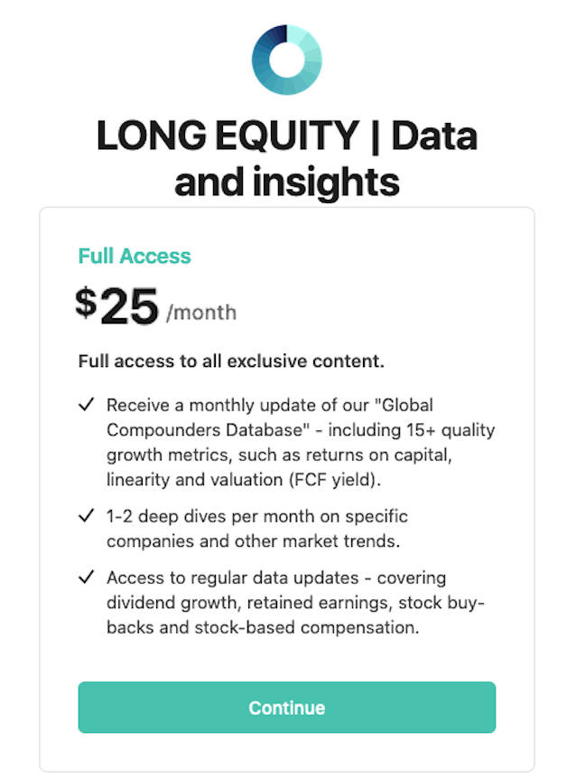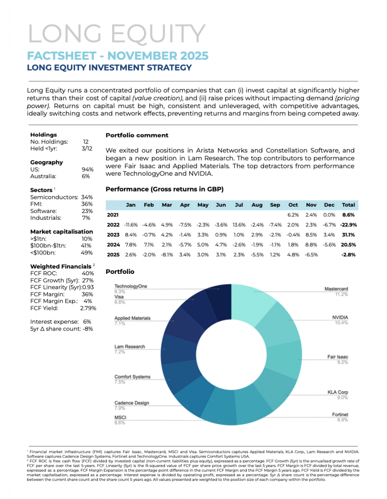 Long Equity runs a quality growth portfolio of companies with high returns on capital and high free cash flow per share growth.